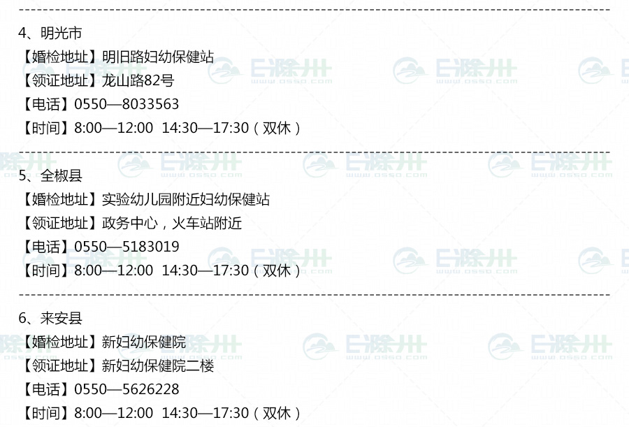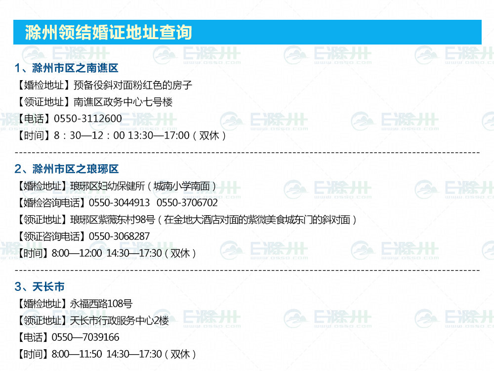 滁州市免費婚檢及結婚領證地址